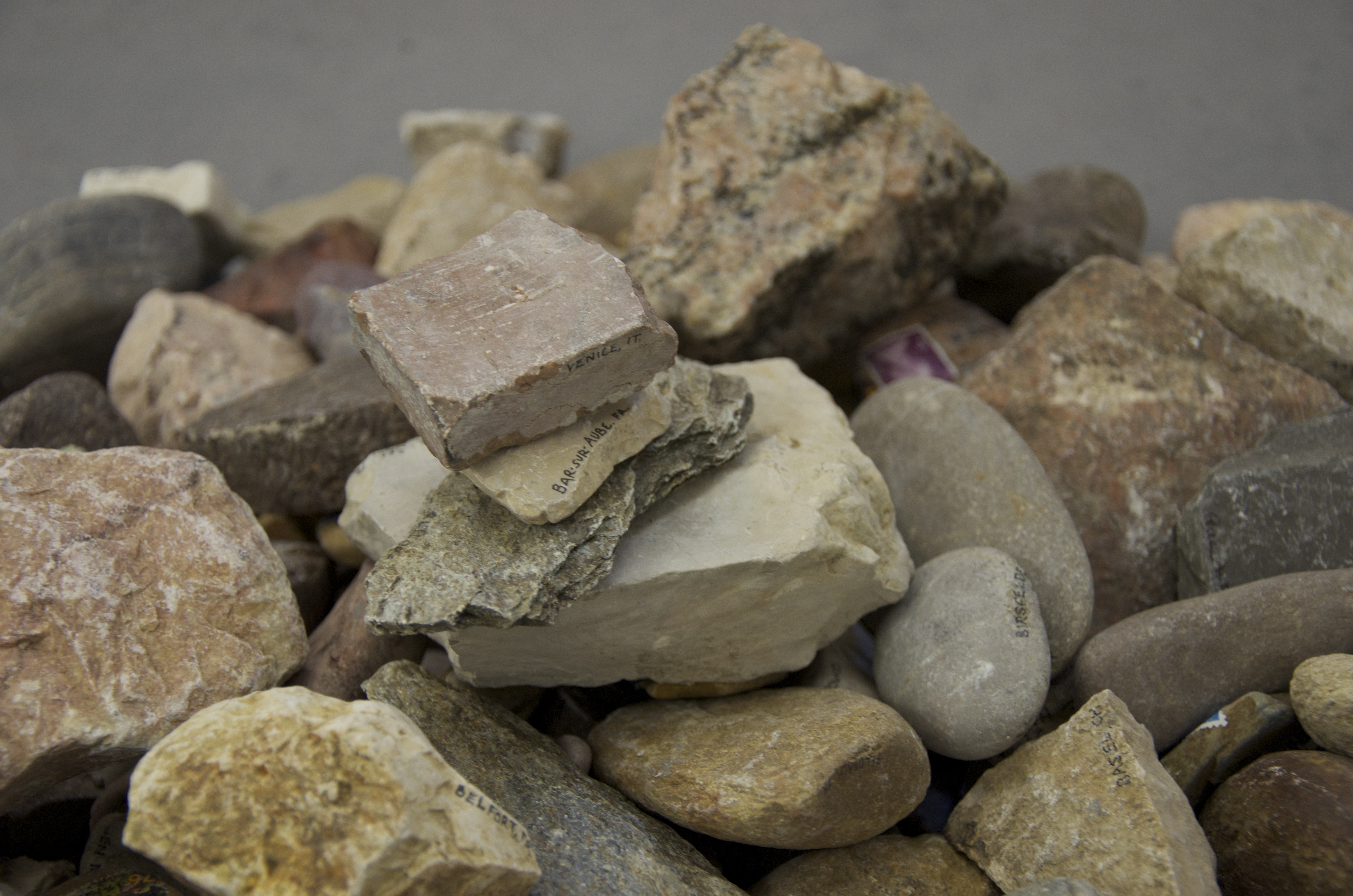 Upon the way I collected rocks from the landscape through which I passed. The rock, a completely tangible article, which relentlessly surrounds us as an intangible landscape.